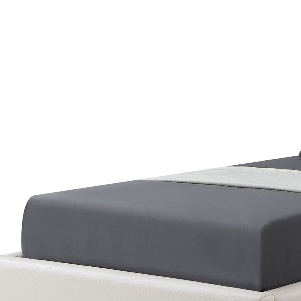 White Solid Wood Full Upholstered Faux Leather Bed with Nailhead Trim