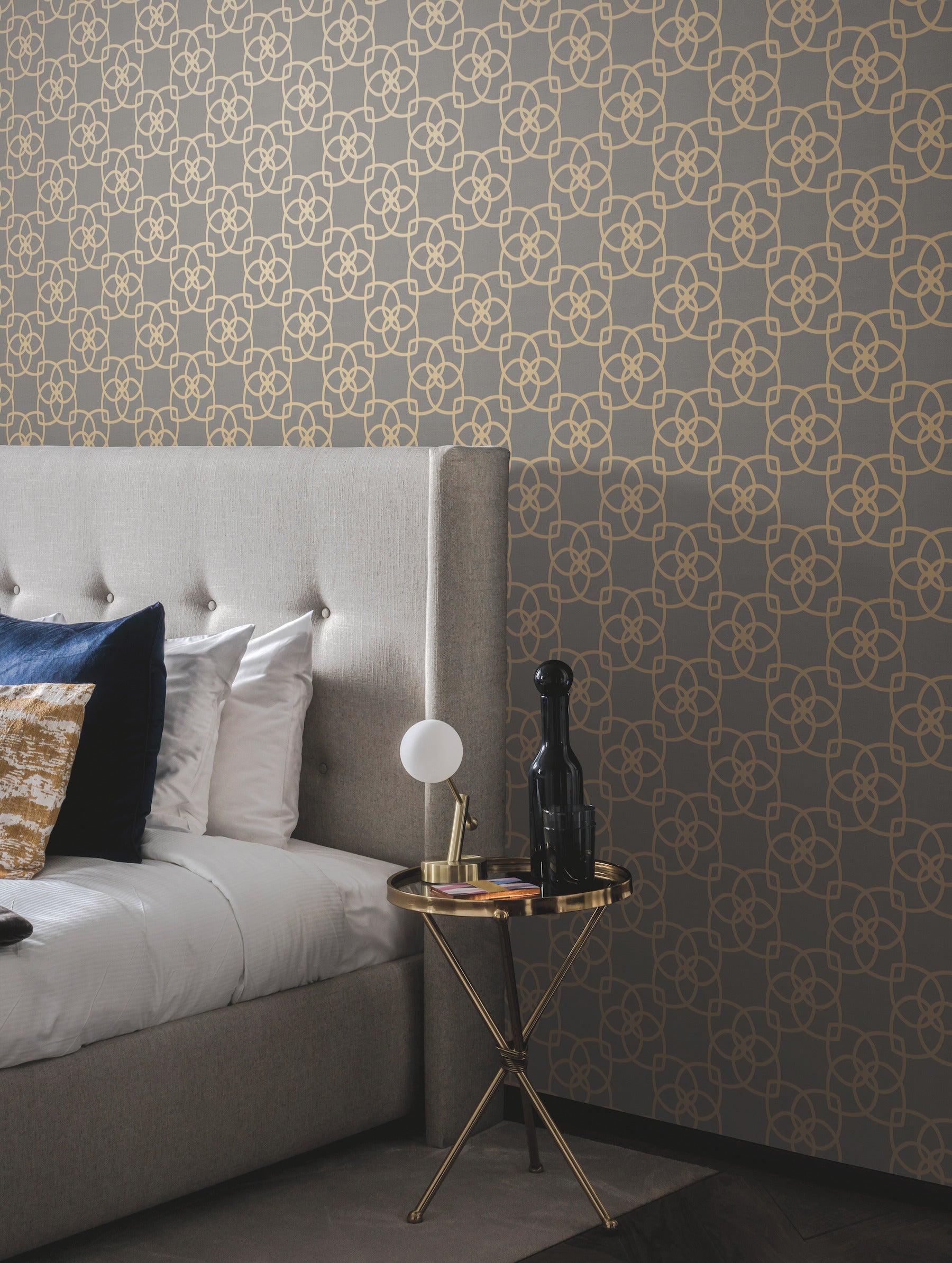 Pattern: Y6200204 / Serendipity Grey and Gold Metallic Wallpaper