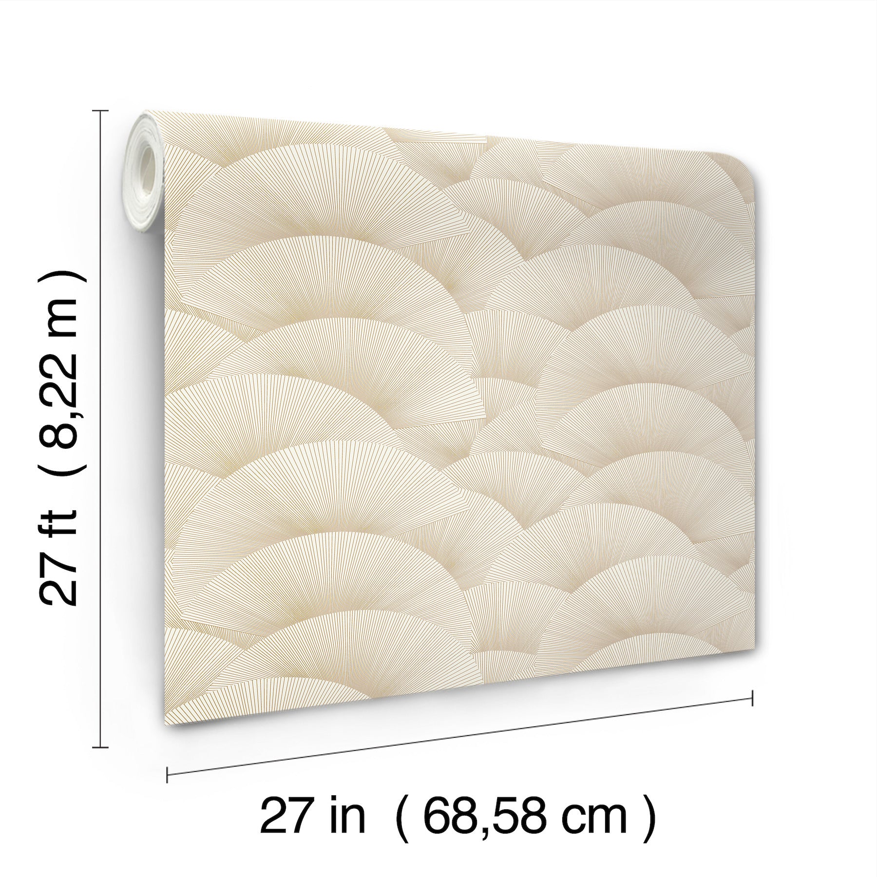 Use:Slender line drawings of half-moon scallops create layers of demilune fans gathered in Morning Shell's allover pattern of subtle shadows and optic illusions, shown here in cream with gold metallic. This Morning Shell Wallpaper measures approximately 27 inches wide by 27 feet long, measuring approximately 60.8 square feet per roll. The tea garden provides a meditative pathway from the outside world to inner tranquility. Experience the quiet luxury and uncompromising beauty within this second edition Tea Garden collection.