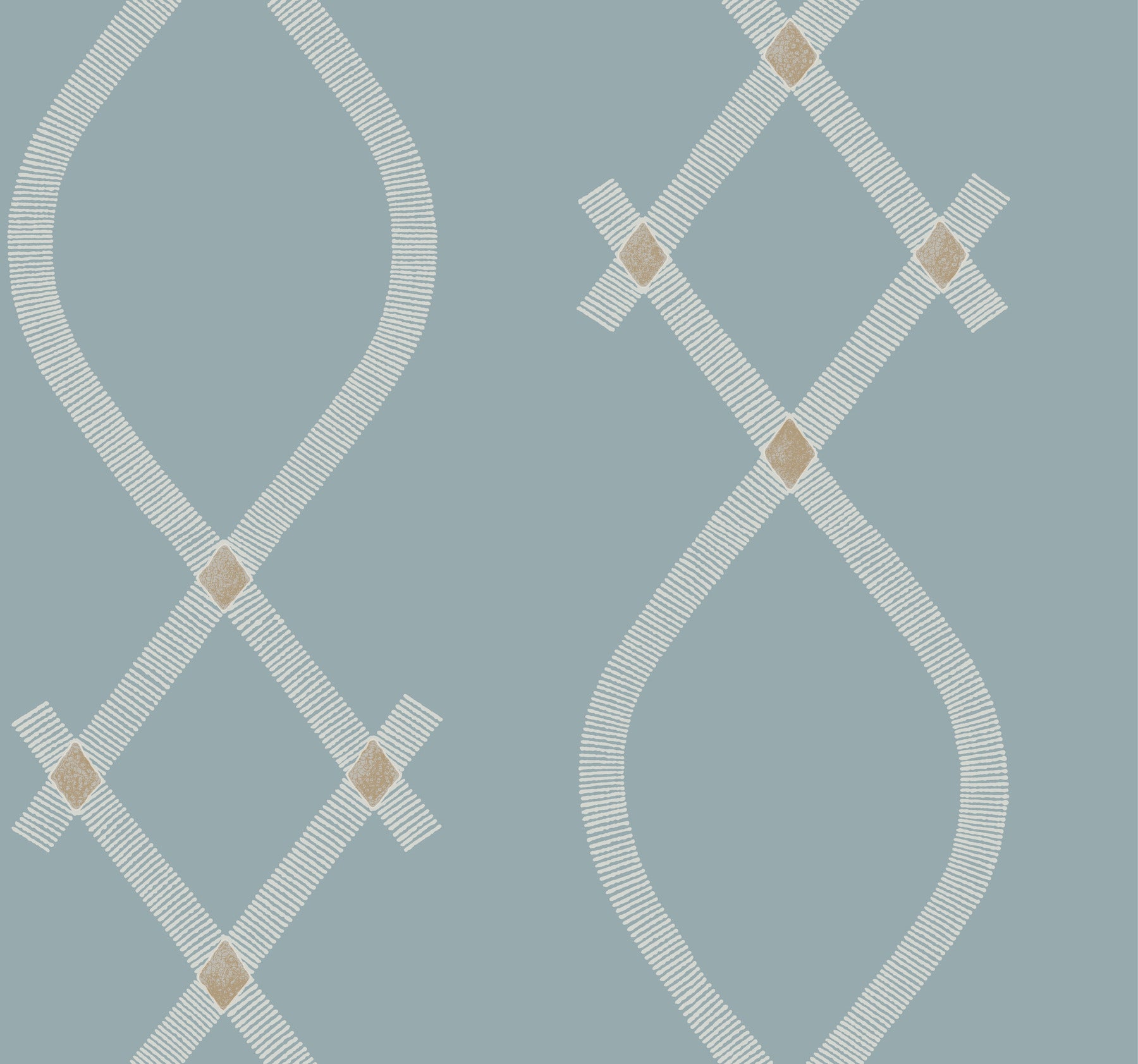 Use:The geometric pattern Elena?s suggestion of enlarged looped ribbons creates this raised, overlapping diamond and striped ogee effect, shown here in sky blue and pearl with gold metallic. This Ellena Wallpaper measures approximately 27 inches wide by 27 feet long, measuring approximately 60.8 square feet per roll. The tea garden provides a meditative pathway from the outside world to inner tranquility. Experience the quiet luxury and uncompromising beauty within this second edition Tea Garden collection.
