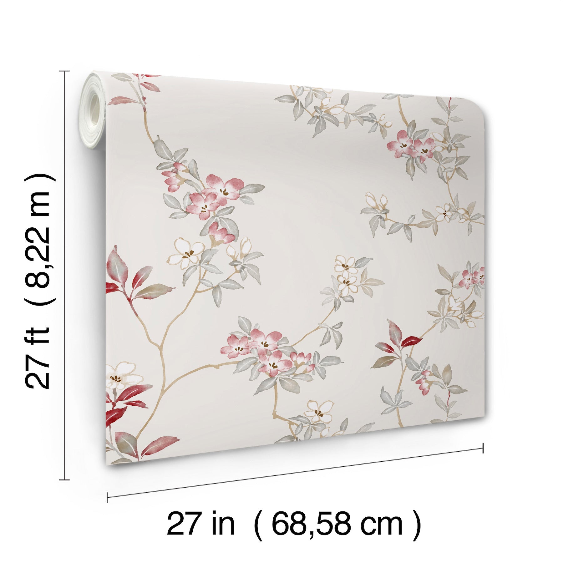 Use:Tender watercolor buds, colorful blooms, and new leaves cling to April Blossom branches, afloat in a sea of classic color in this stylized floral motif, shown here in rose blush and grey on cream. This April Blossom Wallpaper measures approximately 27 inches wide by 27 feet long, measuring approximately 60.8 square feet per roll. The tea garden provides a meditative pathway from the outside world to inner tranquility. Experience the quiet luxury and uncompromising beauty within this second edition Tea Garden collection.