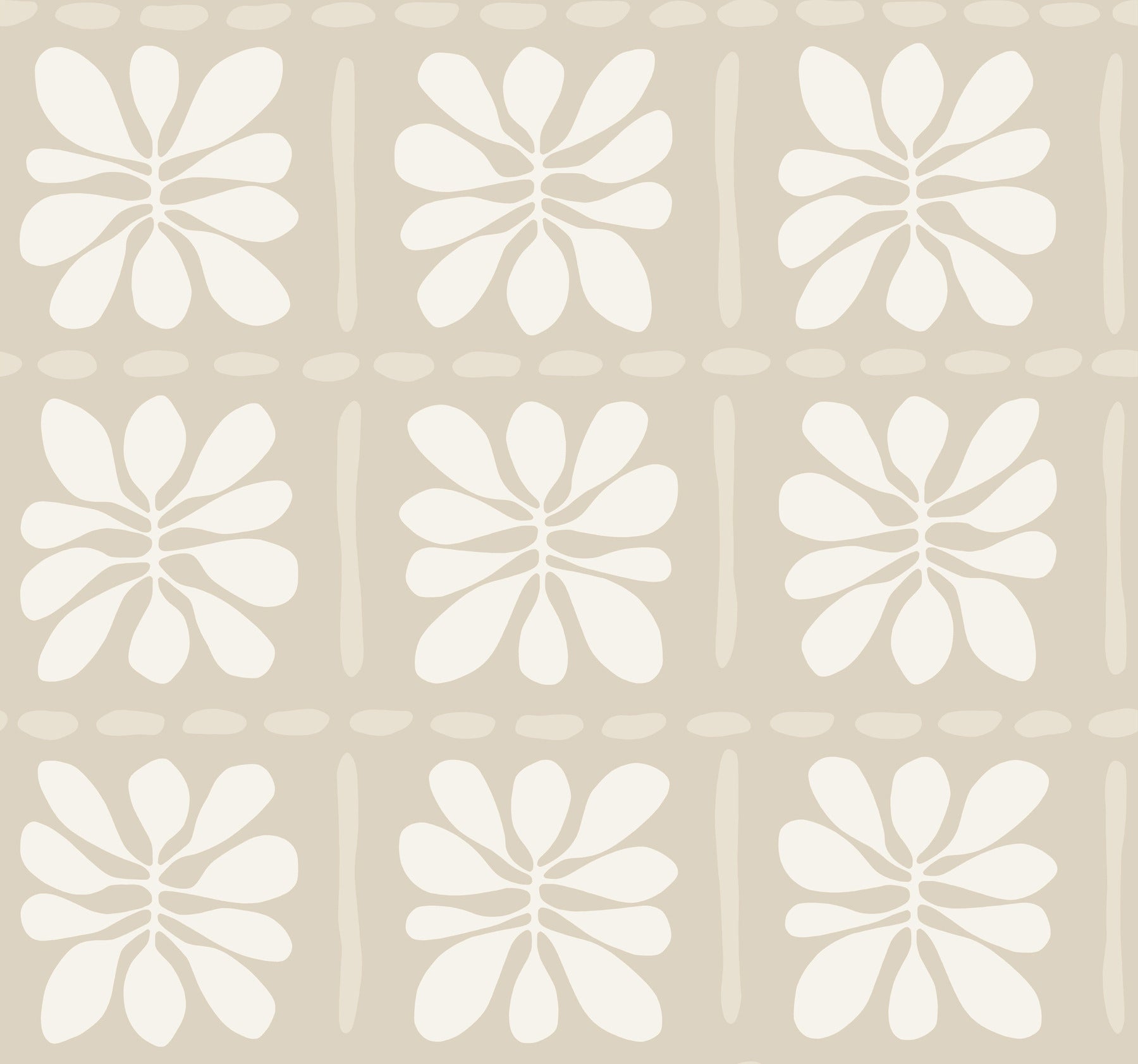 Use:Abstracted flowers are framed by stitched lines, giving pattern Mimosa Fleur a quilted aesthetic with artistic flair. Featured here in a palette of white, beige, and sand. This Mimosa Fleur Wallpaper measures approximately 27 inches wide by 27 feet long, measuring approximately 60.8 square feet per roll. Drawing inspiration from the gestural fluidity of turn of the century artwork, Artisan Studio offers an exploration of color, abstraction, and organic forms.