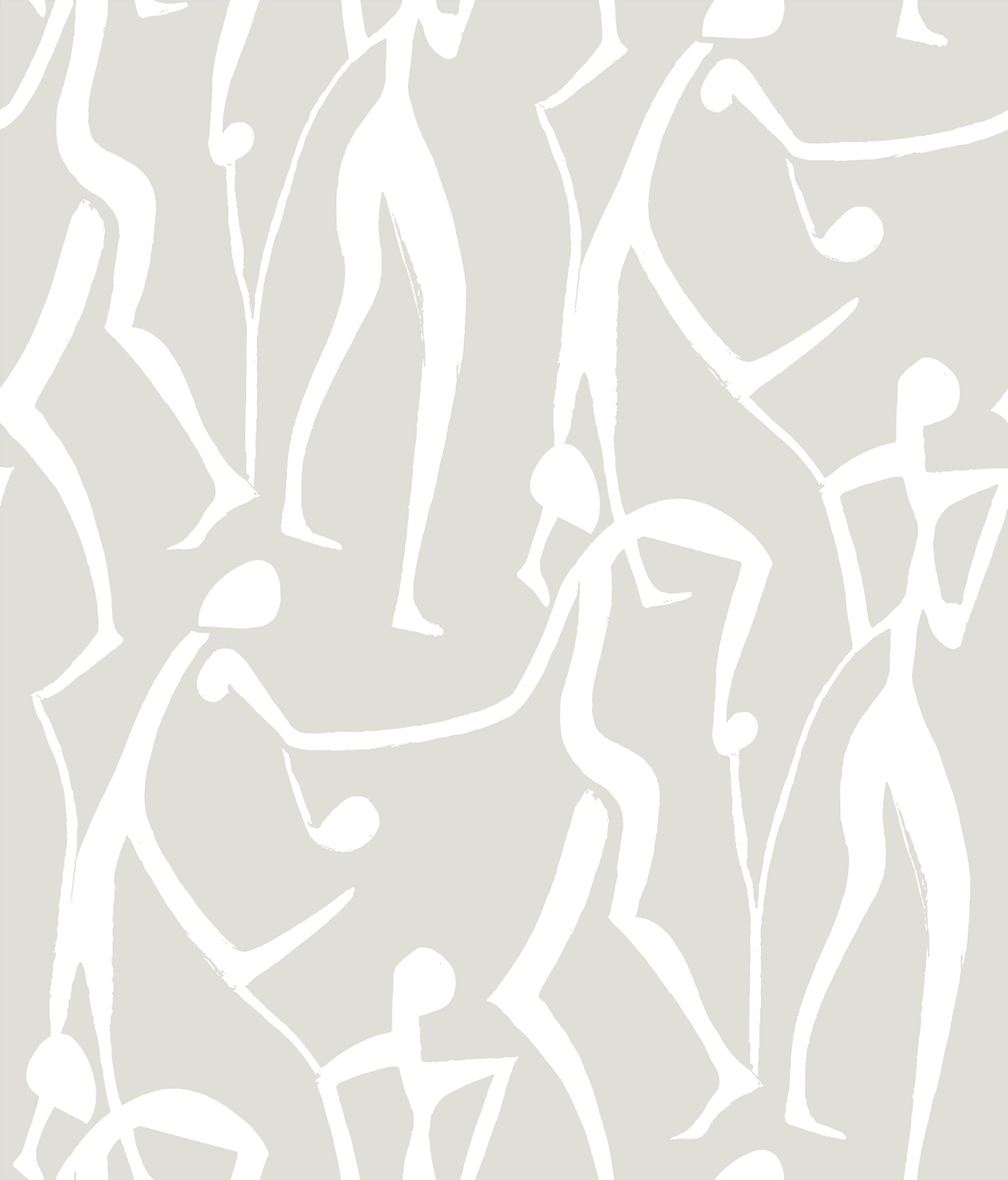 Use:Free-flowing human figures move to the rhythms of life in Joyful Dancers' expressive celebration. Featured here in white and pale grey. This Joyful Dancers Wallpaper measures approximately 20.5 inches wide by 33 feet long, measuring approximately 56.4 square feet per roll. Drawing inspiration from the gestural fluidity of turn of the century artwork, Artisan Studio offers an exploration of color, abstraction, and organic forms.