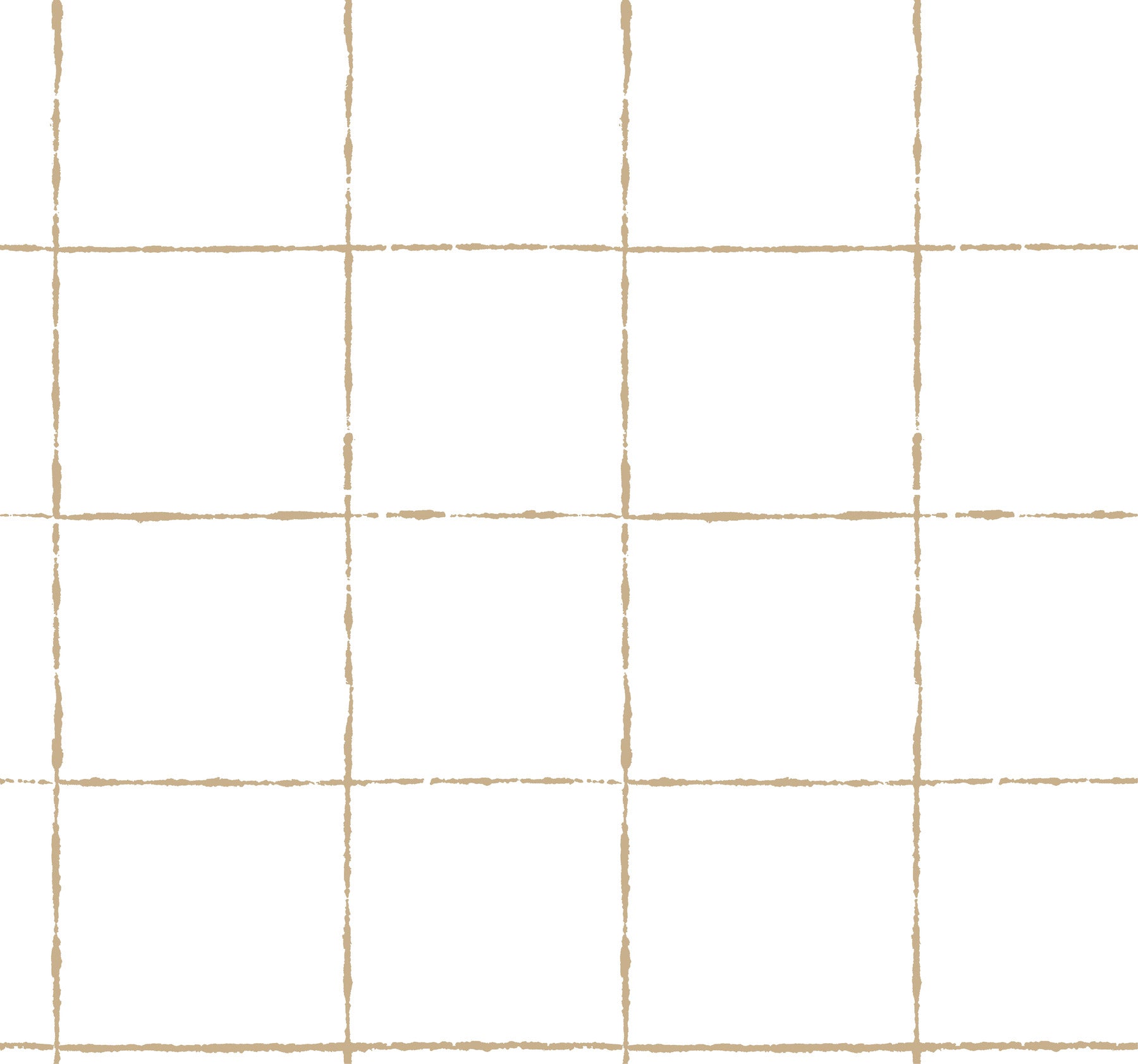 metallic gold lines against white. This La Vitre Plaid Wallpaper measures approximately 27 inches wide by 27 feet long, measuring approximately 60.8 square feet per roll. Drawing inspiration from the gestural fluidity of turn of the century artwork, Artisan Studio offers an exploration of color, abstraction, and organic forms.