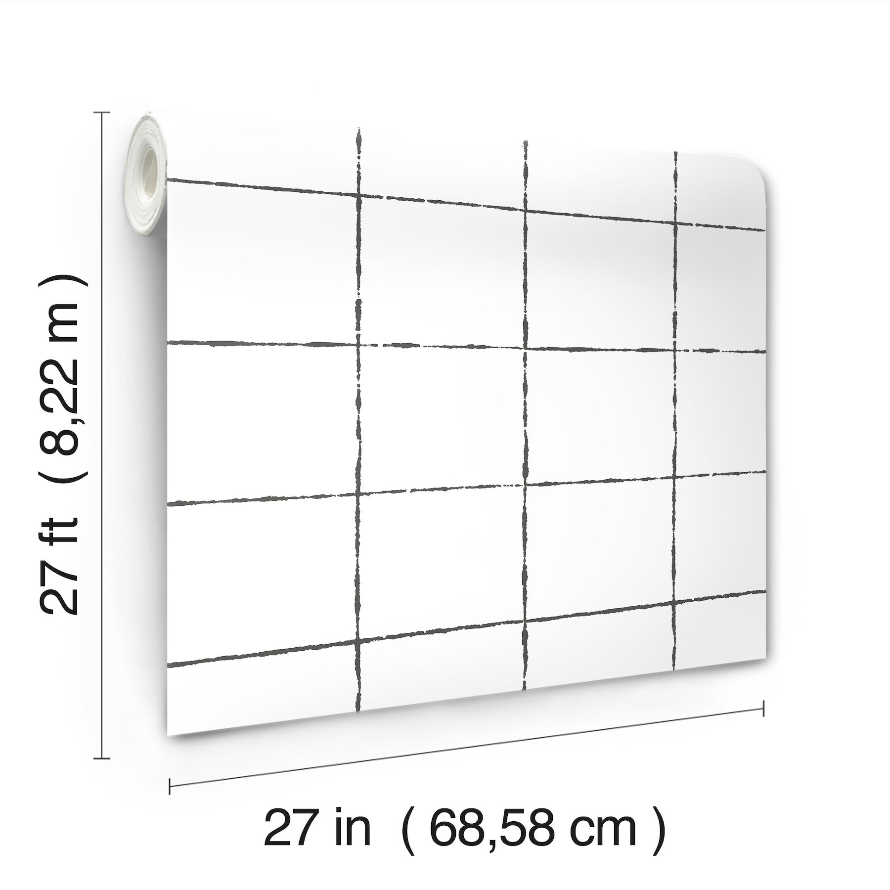 raised black lines against white. This La Vitre Plaid Wallpaper measures approximately 27 inches wide by 27 feet long, measuring approximately 60.8 square feet per roll. Drawing inspiration from the gestural fluidity of turn of the century artwork, Artisan Studio offers an exploration of color, abstraction, and organic forms.