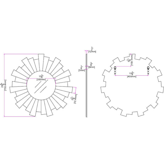 30" Antiqued Silver Gray Sunburst Wall Mounted Accent Mirror
