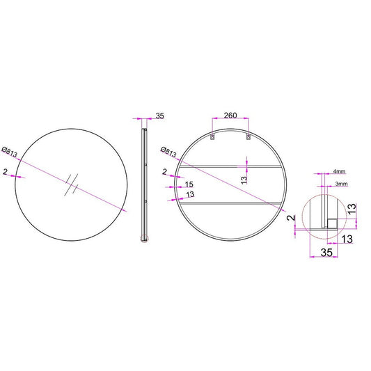 32" Black Round Metal Framed Accent Mirror
